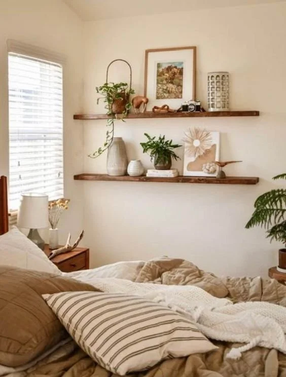 Floating shelves should be installed at around eye height, or if you’re hanging 2 or more then the vertical centre should be at eye height. Make sure you think about what you’re going to add to the shelves and space them apart accordingly.