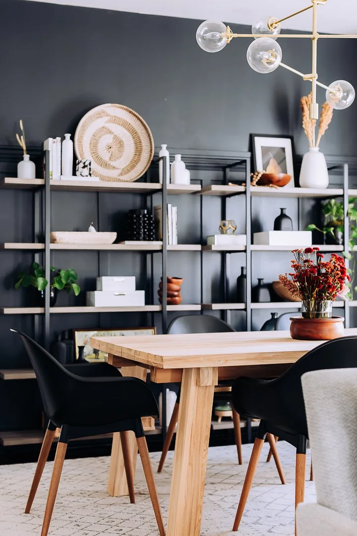 A shelving unit is a great choice if you like the look of decorative objects or books on display. Either fill it with books, storage and decorative bits (second example above), or leave it more empty for a minimalist look (first example).