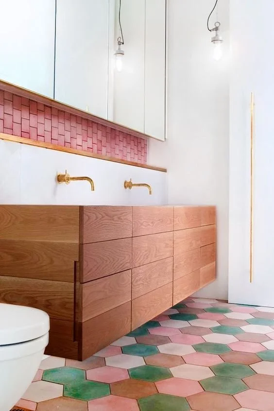 Finally… you’ll find when you start looking for tiles that manufacturers often make the same tiles in multiple colours. Rather than sticking with one colour, in this example they’ve chosen a few colours and randomly used them throughout the floor - again a really simple but a really effective idea.