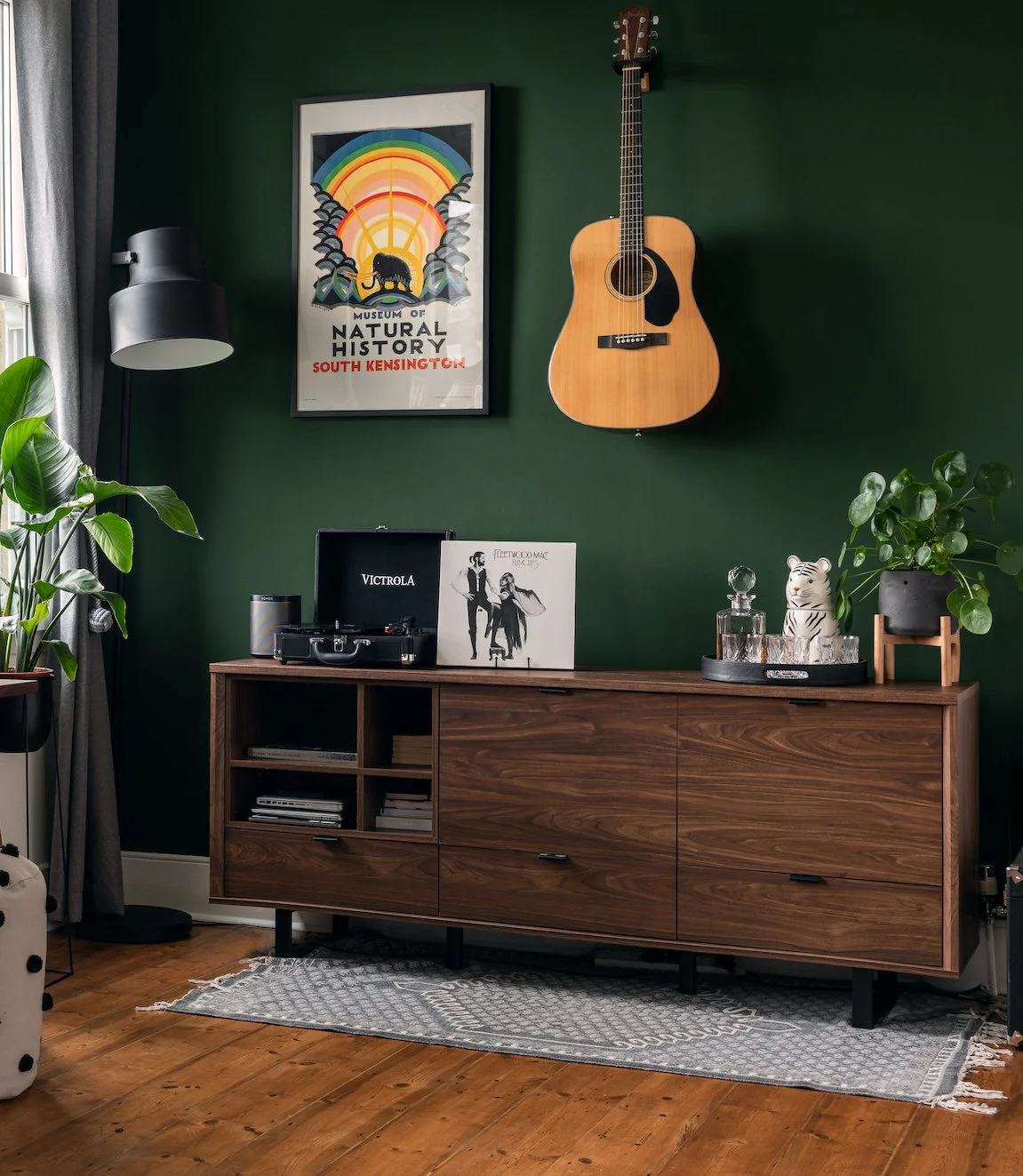 Similar to a console table, a sideboard is a good option when you have a little more space, as you’ll need room to be able to open the drawers or doors.